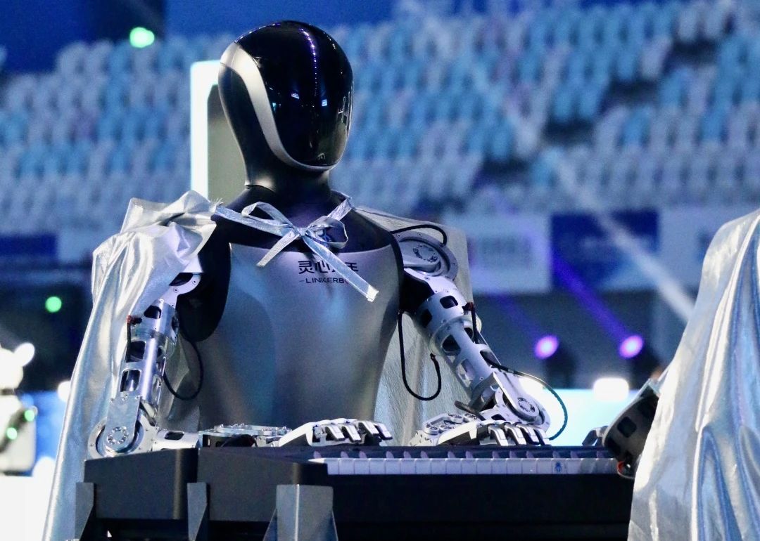钢琴机器人优雅落座,与钢琴演奏家段俊对望。当《欢迎来到碳基生命的世界》的旋律流淌而出,机械的精准与人类的温度,在黑白琴键上交汇共鸣。紧接着,另一位灵心巧手的“乐手”稳稳执起笛子,悠扬笛声穿越时空。名为Linker Hand的高自由度灵巧手,精准按压琴键,细腻操控笛身,成为了这场人机协奏的灵魂。