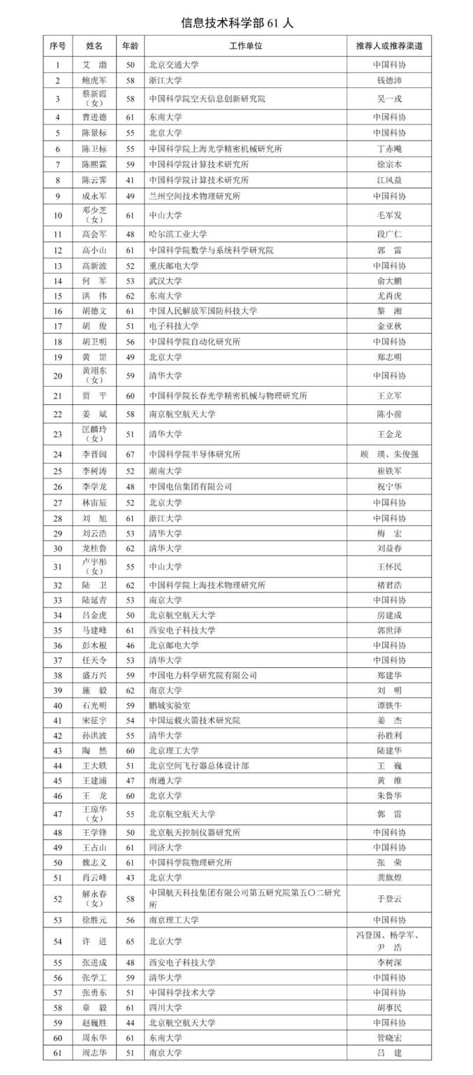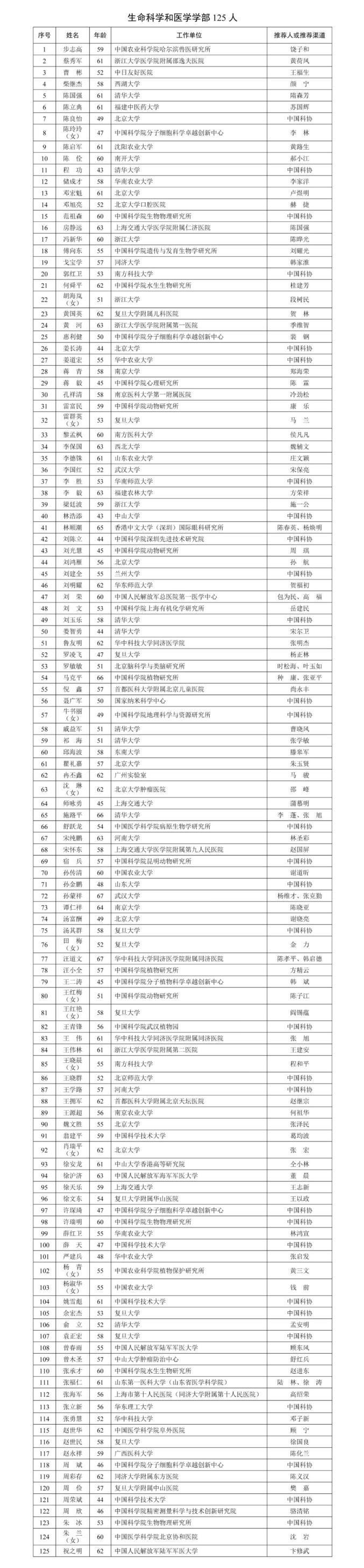 重磅!两院公布2025年院士增选有效候选人名单