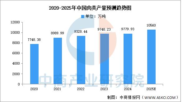 随着肉制品需求快速增长,国内肉类产量也不断增加。中商产业研究院发布的《2024-2029年中国农产品产业深度分析及产业发展风险研究预测报告》显示,2024年全国肉类产量达9779.93万吨,同比增长0.33%。中商产业研究院分析师预测,2025年全国肉类产量将超过10000万吨。