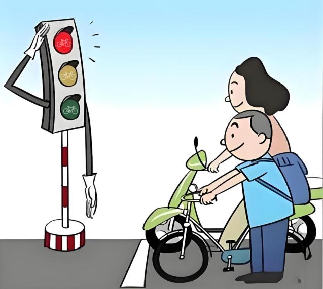 举个例子:小A吸取了上次的教训,骑着共享单车到丁字路口,观察后发现面前人行横道信号灯为绿灯,便继续通行,刚通过路口又被执勤交警拦了下来。小A发问:“我看到绿灯才通行的,怎么还拦我呀?”