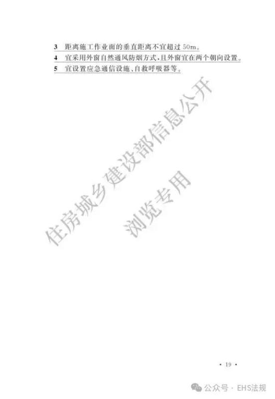 临时避难场所(新增部分):新增高度超100m工程需设临时避难场所,结合永久避难层;临时避难场所应配乙级防火门窗并配备相应设置等,距作业面垂直距离≤50m。