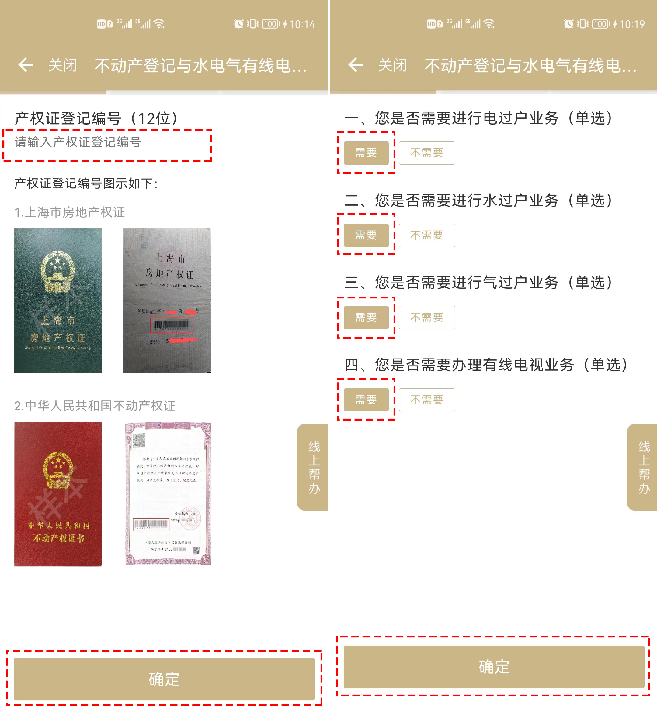 3、填写过户信息(水电气的户号、有线电视业务类型等);