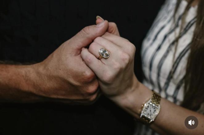 分享的照片中,霉霉手上戴着一枚超大的钻戒,甜蜜加倍。