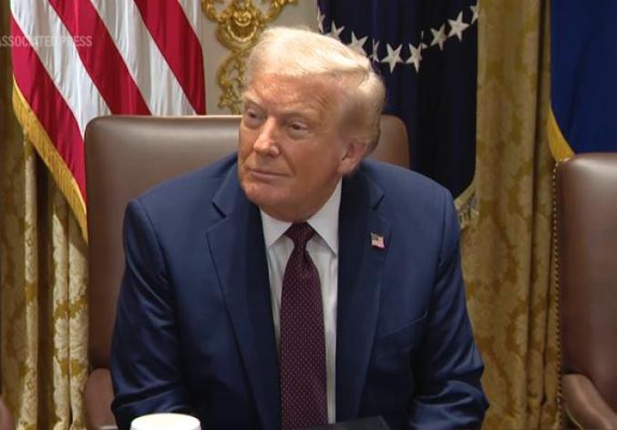 特朗普在26日的内阁会议上为斯威夫特送上祝福。图为美媒发布的视频截图特朗普则为这对情侣送上美好祝福。“我祝他好运。”特朗普说,“我认为他是一名出色的球员,也是个好人。而她是一位了不起的人。所以我祝他们好运。”