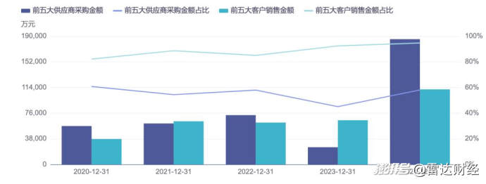 此外,寒武纪的商业模式还存在客户集中度较高的隐忧。同花顺iFind数据显示,2020年至2024年,公司前五大客户贡献的收入占比均维持在80%以上的水准,而这种对少数大客户的高度依赖,使得公司的营收结构显得相对脆弱。