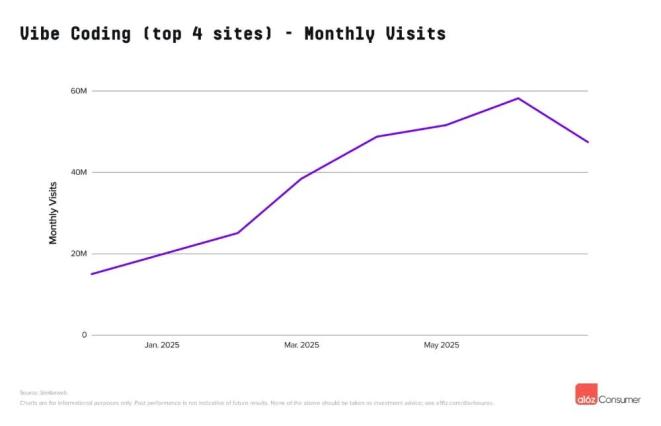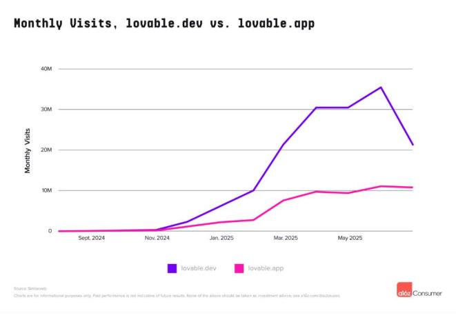 5、Vibe Coding(氛围编程)有兴起之势,Lovable等相关产品留存高,迎来流量激增;
