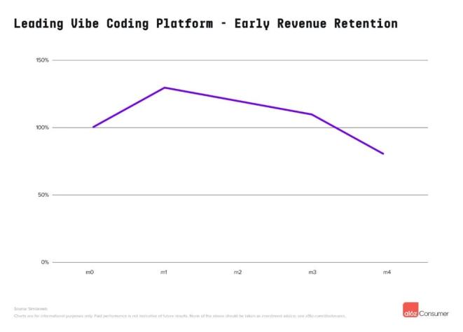 尽管Vibe Coding的使用行为看似短暂,早期数据却表明用户留存率较高,或者说,至少有足够多的用户留下来,并随时间推移扩大使用规模。