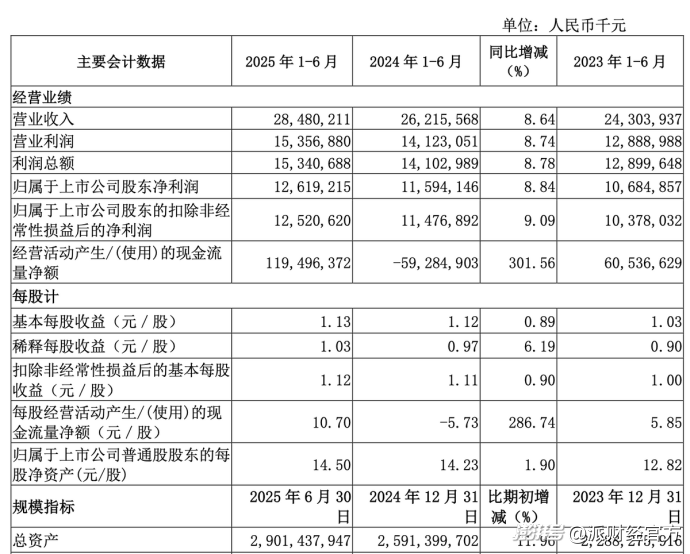 8月28日晚,南京银行(601009.SZ)披露了2025年上半年业绩报告。