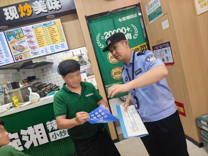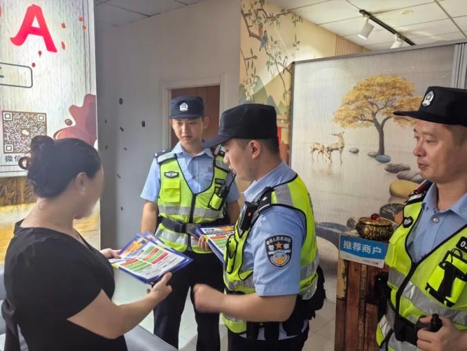 经开区分局组织警力对辖区九小场所开展集中检查。重点检查辖区商圈、酒店、娱乐场所消防设施配备、应急通道畅通情况,对发现隐患现场督促整改。同时,向经营者和群众宣讲消防安全、防诈知识,提升安全意识,全力筑牢辖区安全防线。