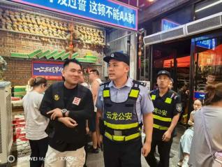 云龙分局围绕夏夜治安巡查宣防集中统一行动要求,行动期间重点对辖区商业区、路烧烤店、宾馆等人员密集场所进行巡逻检查。活动中,民警对消防设施、宾馆住宿登记等进行检查,切实提高见警率、管事率,有效震慑违法犯罪活动。