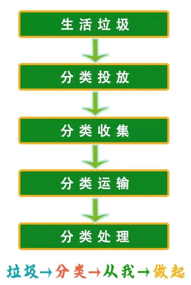 垃圾分类流程图垃圾分类是在源头按照垃圾的不同成分、属性、利用价值以及对环境的影响,并根据不同处置方式的要求,分成属性不同的若干种类,达到分类收集、分类运输和分类处理的目的。