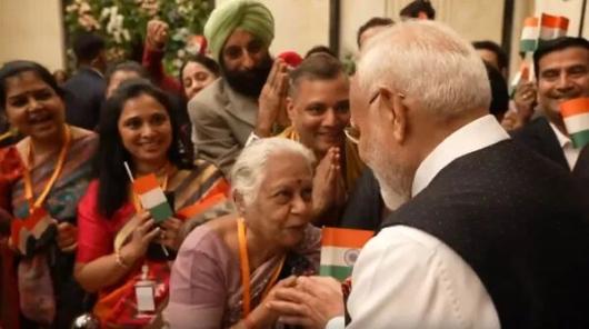 机前铺就红毯,还有欢迎的舞蹈方阵莫迪抵达下榻的酒店时,许多印度侨民在大堂等待,并向莫迪欢呼致意。随后,莫迪走近人群,和他们一一握手、问候。