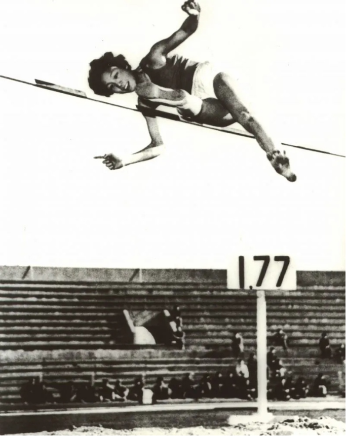 1959年,郑凤荣这位明星运动员参加了第一届全运会,她不仅获得了跳高的冠军,而且还获得了三项全能的第一名。