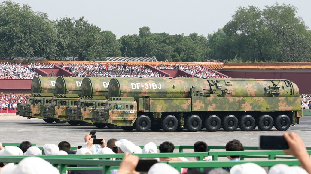 9月3日,纪念中国人民抗日战争暨世界反法西斯战争胜利80周年大会在北京隆重举行。这是核导弹第一方队通过天安门广场。新华社 图