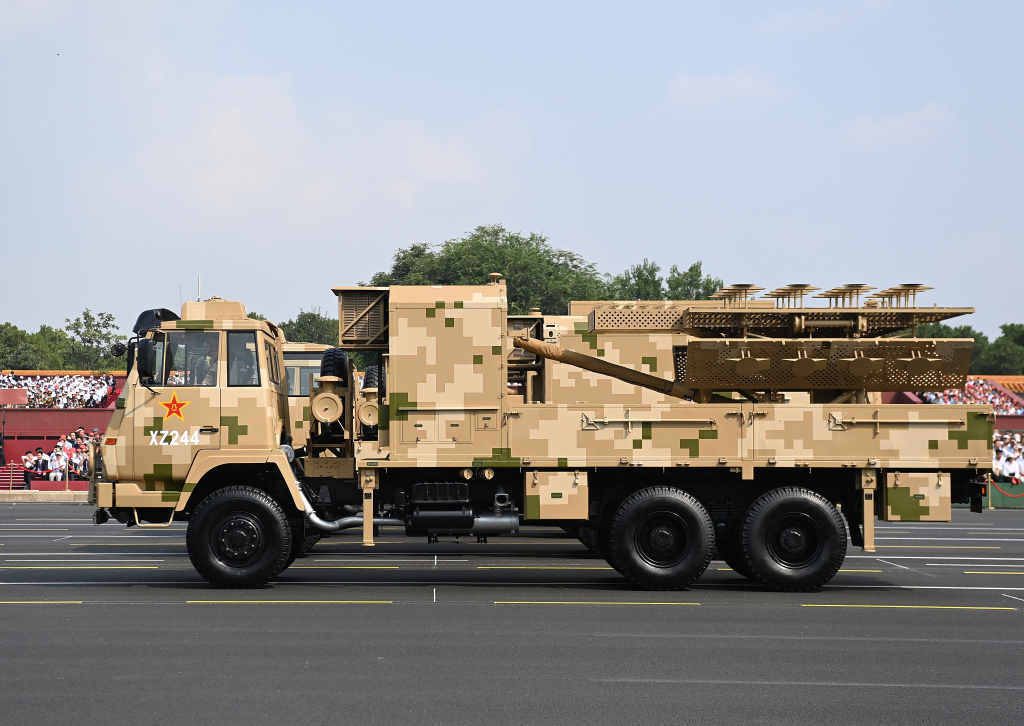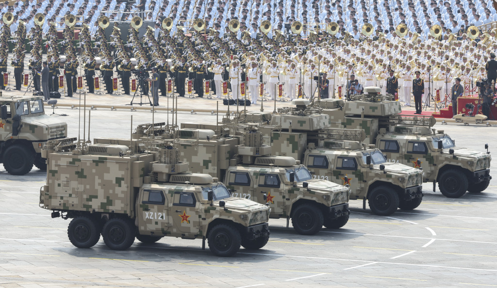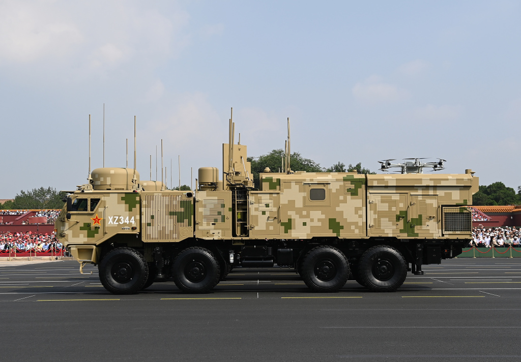 2025年9月3日,纪念中国人民抗日战争暨世界反法西斯战争胜利80周年大会在北京隆重举行。这是电子对抗方队接受检阅。 新华社记者 陈诚 摄