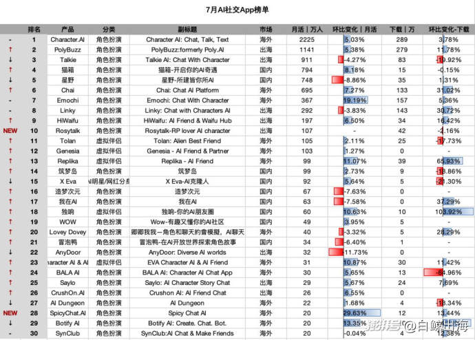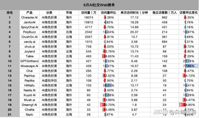 附 6 月 AI 社交榜单
