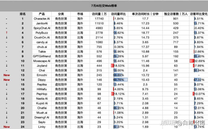 本篇为第 3 期 2025 年 7 月 AI 社交榜单。