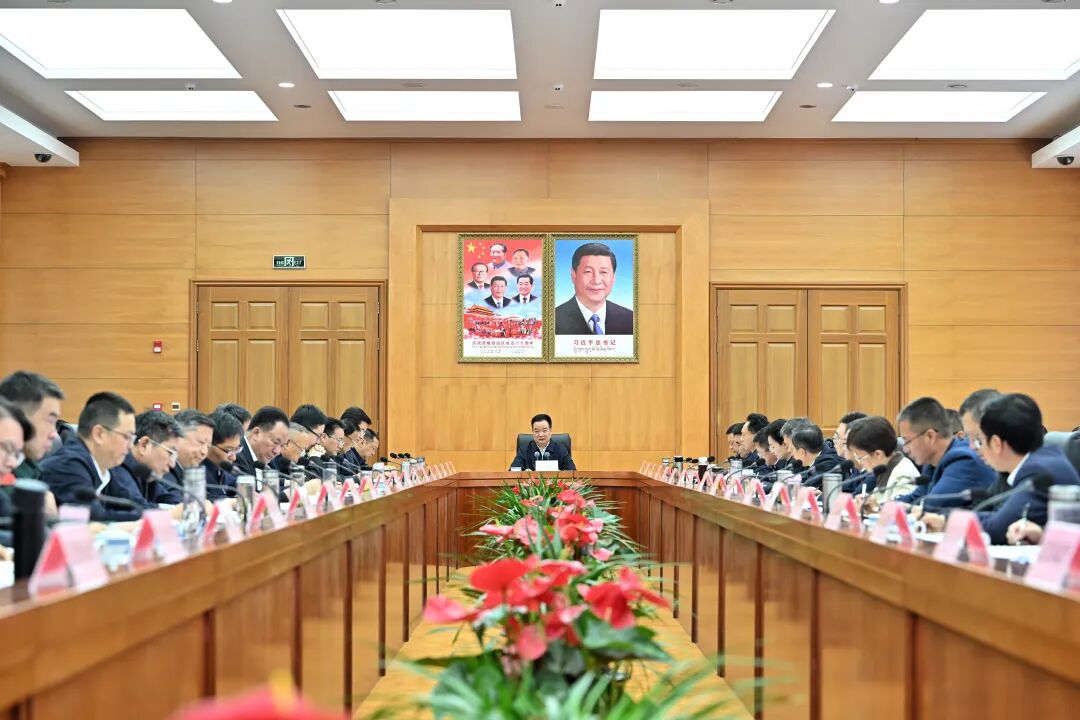 9月2日,自治区党委书记王君正主持召开自治区着力创建“三区一高地”领导小组会议。这是会议现场。记者 旦增西旦 摄
