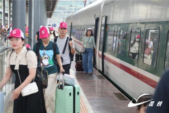 为服务好口岸运输市场,中国铁路昆明局集团有限公司充分做好前期调研,深度摸排跨境客流,全面掌握旅行团线路、出行时段及行程安排等关键信息,结合实际需求调整运能,满足跨境旅游团乘车需求。直达列车的开行,打通了越南游客从河口至大理的“一站式”动车旅游通道,游客无需中转即可直达目的地,极大提升出行便捷度与舒适度。据了解,该趟列车河口北站上车旅客达706人,其中越南旅客553人。