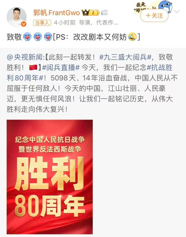 网友喊话:看完阅兵要改剧本了!知名导演紧急回应