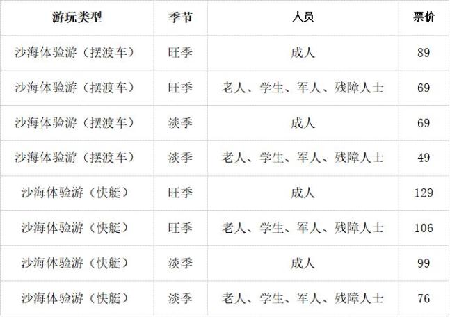 交通票价格一览表