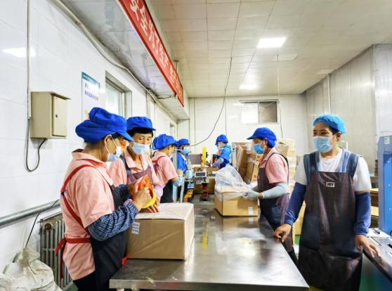 河北滦南水产品加工车间工人正在装盒。杜昭摄