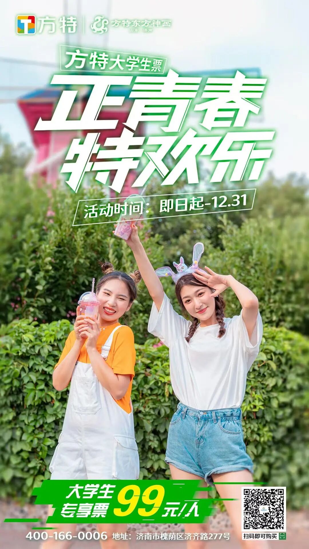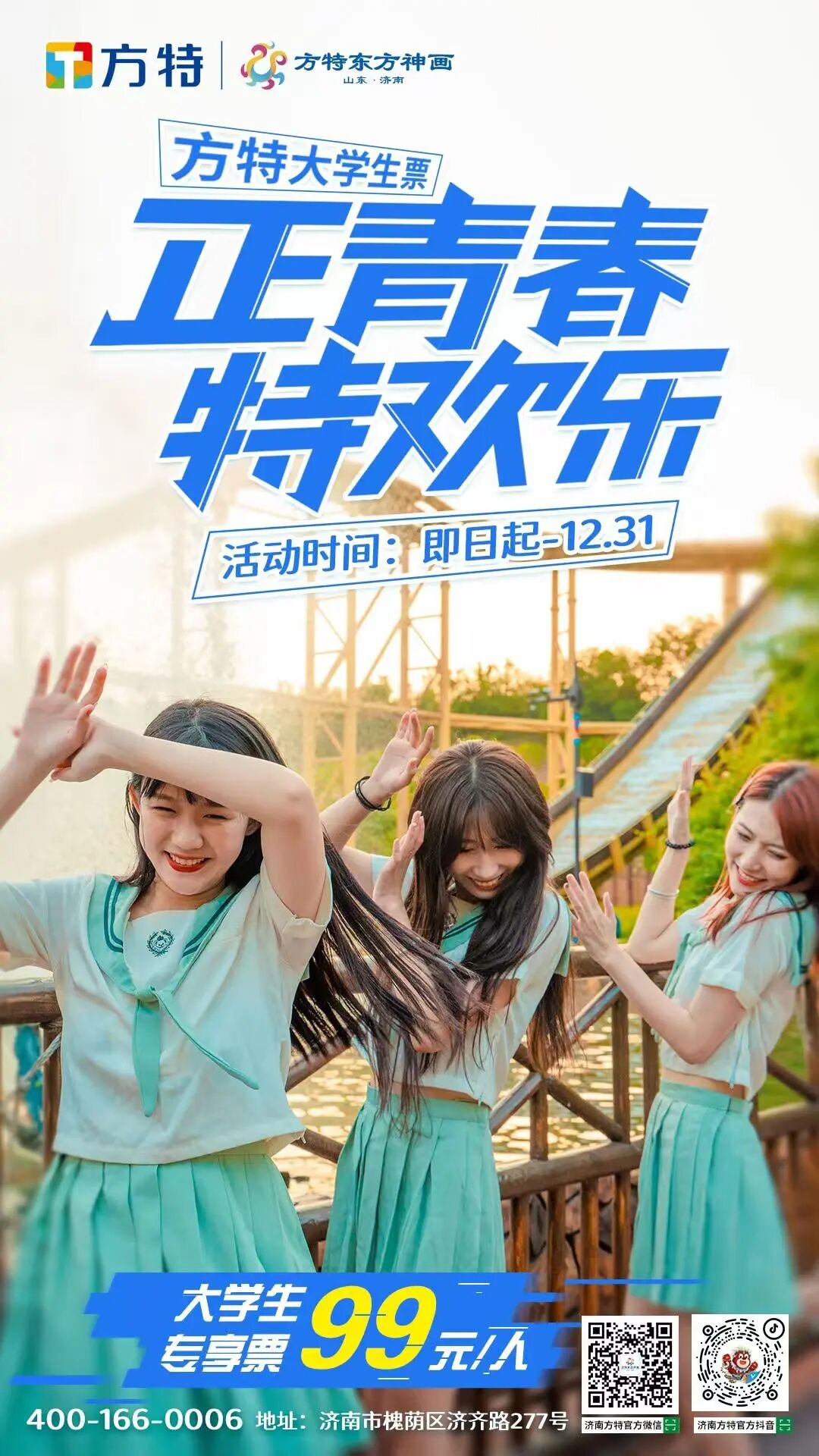 即日起至12月大学生门票(不含体验券)优惠票69元。