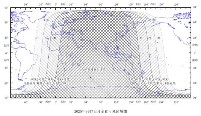 △ 2025年9月7日月全食见食区域图(来源:紫金山天文台)