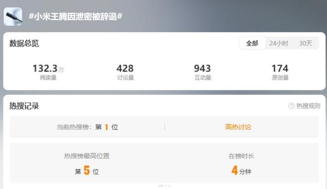 9月8日晚,话题词“小米王腾因泄密被辞退”冲上热搜。