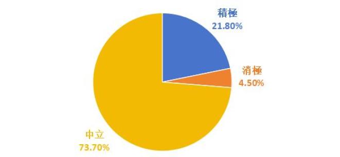 图4 :香港报道阅兵数量最多前十家媒体从情绪取向来看,香港社会对九三阅兵的正向态度呈现明显优势。数据显示,正面积极态度占比达21.8%,中立态度为73.7%,合计高达95.5%;与仅4.5%的负面评价形成鲜明对比。这一结果显示,在涉及重大历史与国家纪念活动时,香港社会展现出高度的民族情感认同与理性舆论态度。
