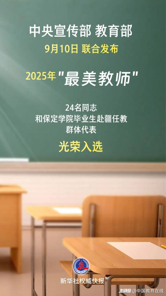 在第41个教师节到来之际,中央宣传部、教育部向全社会公开发布2025年全国“最美教师”。