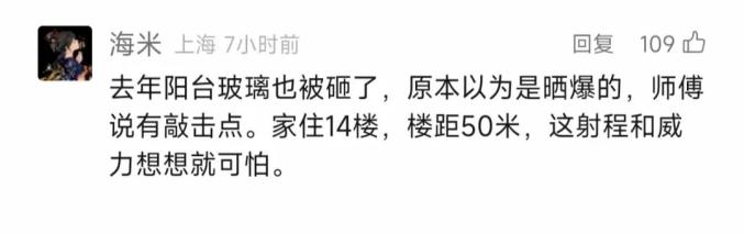 上海市公安局宝山分局庙行派出所民警 宦天豪:叶某从今年开始,他总共购买了约5到10公斤的钢珠。这次他是在家里面的北阳台朝外面拿弹弓打的,正好不巧,穿过了树,打到了玻璃上面。