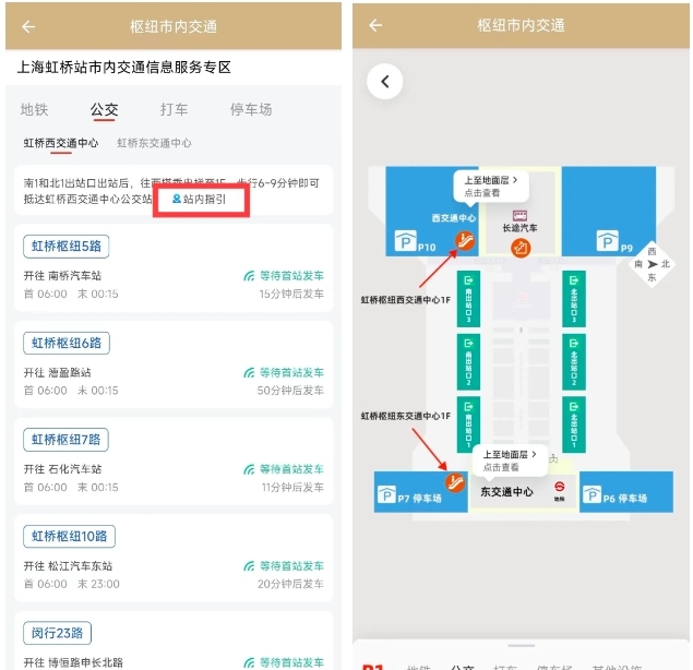 如果不清楚行走路线,可以点击站内指引,然后就能看到通往公交站的地图,按照地图行走即可。