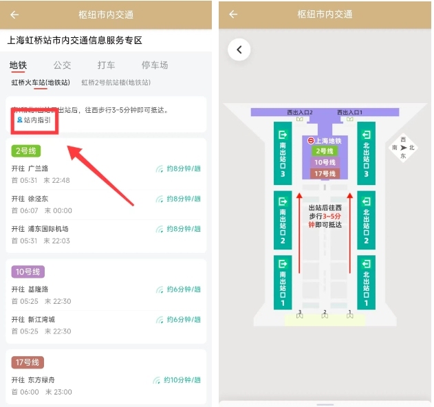 如果不清楚行走路线,可以点击站内指引,然后就能看到通往地铁站的地图,按照地图行走即可。
