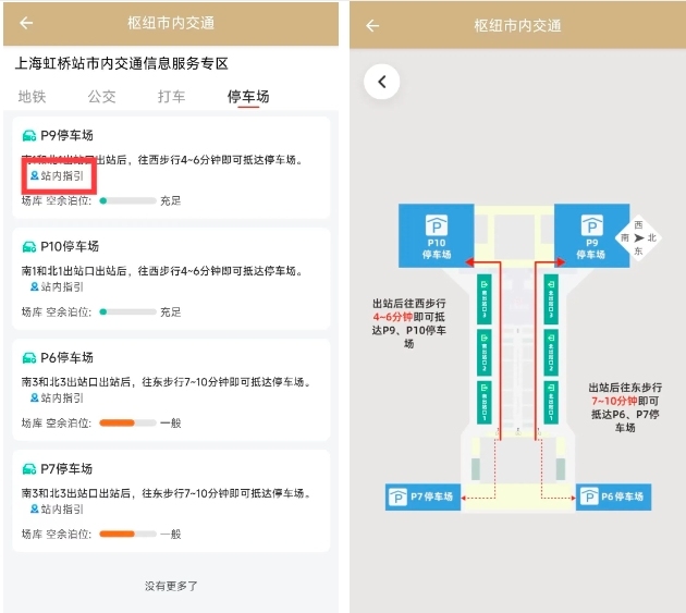 如果不清楚行走路线,可以点击站内指引,然后就能看到通往停车场的地图,按照地图行走即可。