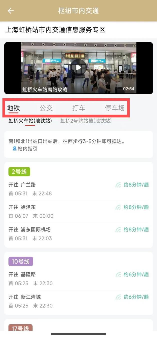 上海枢纽市内交通信息