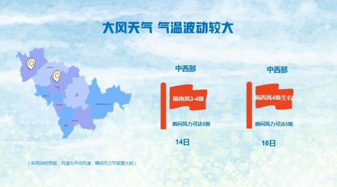 14日和16日中西部风力较大,注意防风防火以及高秆作物抗倒伏。