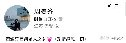 另一位是比他大五岁的姐姐周晏齐。早年在加拿大留学,她曾在新加坡星展银行工作后回国,2014年海澜之家,后来凭借公司上市身价大涨,一度问鼎“江苏女首富”。如今,周晏齐活跃在社交媒体上。