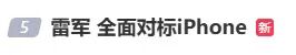 5年前,小米开启高端化战略,并将苹果和iPhone作为对标对象,雷军也多次在公开场合表态“向苹果学习”。值得一提的是,2022年2月,小米集团组建了高端化战略工作组,确立了在“三年手机销量全球第一”战略牵引下的高端化战略目标:产品和体验要全面对标iPhone,三年内拿下国产高端手机市场份额第一。