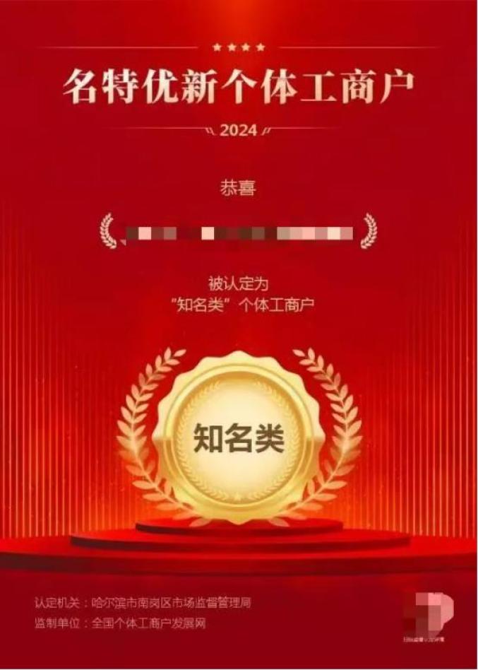 记者从哈市市场监管局了解到,为推动全市个体工商户持续健康发展,2025年“名特优新”个体工商户认定工作自本月起开始,实现个体工商户分型分类精准培育。符合条件的个体工商户,可通过全国“名特优新”培育平台(https://mtyx.gtgsh.com)自主申报,经审核认定后命名为“名特优新”个体工商户。