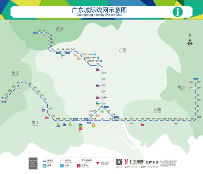 广东城际线网示意图广州东环城际(番禺-白云机场北)与广肇、广惠城际铁路,共同构成大湾区城际铁路的“纵横主轴”;