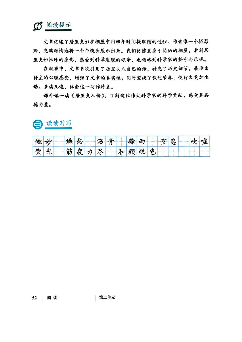 通过描写居里夫妇发现镭元素的过程