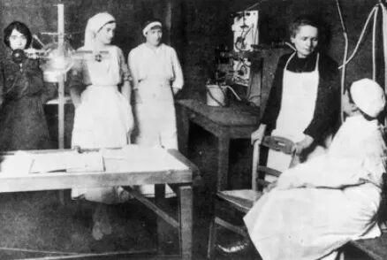 第一次世界大战期间,居里夫人意识到X射线对战场救护的重要性,她组织了移动X光机组,培训了150多名操作员,亲自奔赴前线为伤员服务。据估计,超过百万士兵接受了她的X光机检查。