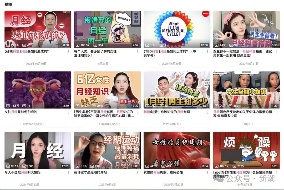 在B站搜索“月经科普”出现的界面