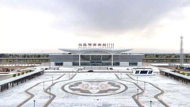 巴彦淖尔站设计理念为“临石刻影,傲河长风”,幕墙格栅色彩取自阴山岩刻,展现深厚历史文化。