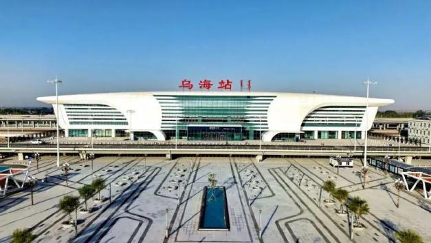 乌海站设计主题“沙漠绿洲,雄鹰腾飞”,象征乌海市经济腾飞与生态和谐。