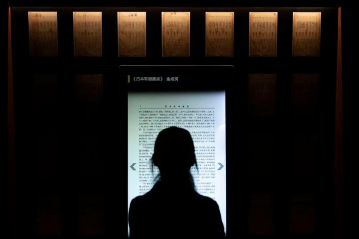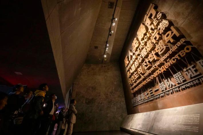 参观者在“殉难者名单墙”参观。新华社记者 杨思琪 摄1945年8月10日