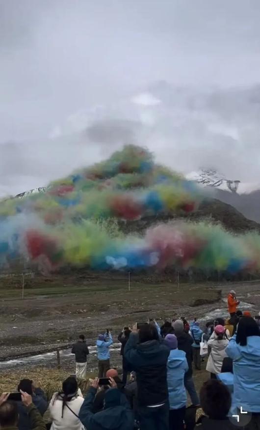 据悉,此次艺术烟花活动位于西藏喜马拉雅山脉江孜热龙地区(海拔约5500米),蔡国强通过火药爆破在山脊点燃三幕烟花,形成“升龙”动态景观。