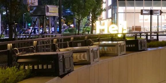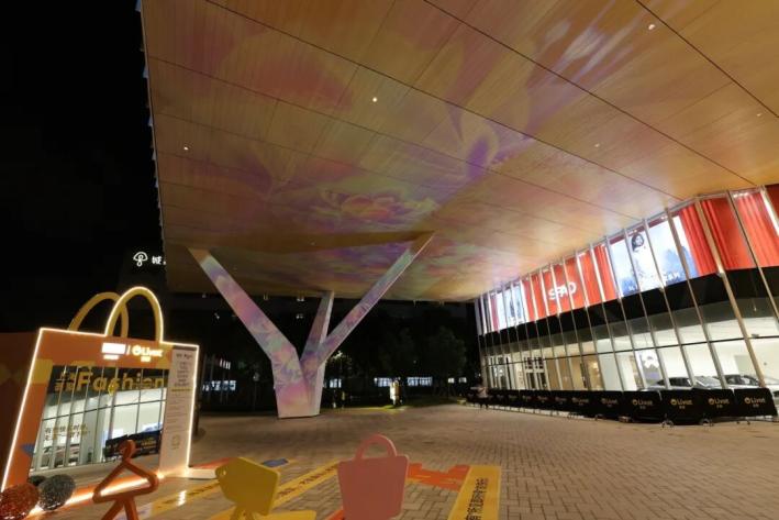 从2号门进入并穿过商场来到3号门前,可以看到此处的下沉式广场上同样摆满了投影箱,这块区域是名为《自然代码》的主题展区,8台投影箱将通过光影效果为市民呈现生态系统的动态变化。
