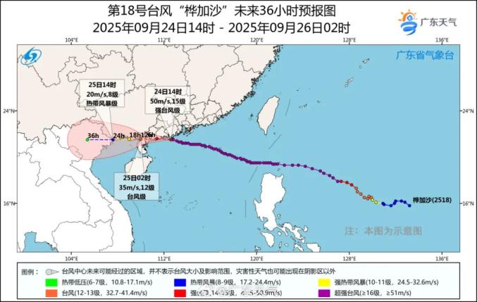 预计,未来24小时内“桦加沙”将以每小时20公里左右的速度向偏西方向移动,将于24日下午到夜间在台山到湛江之间沿海登陆。